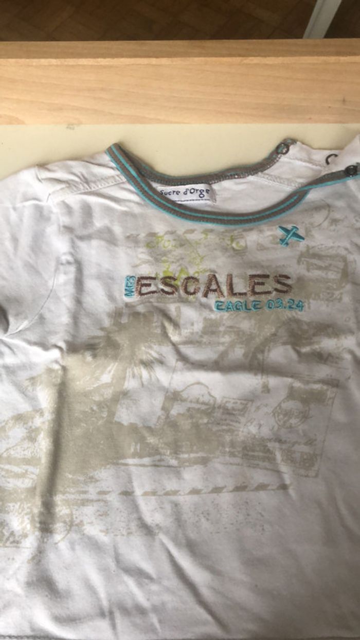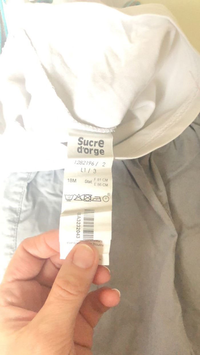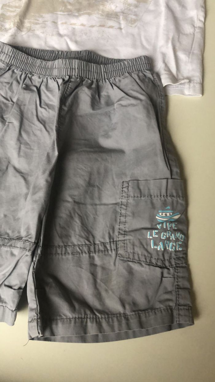Ensemble short et t-shirt blanc gris sucre d’orge 18 mois - photo numéro 7