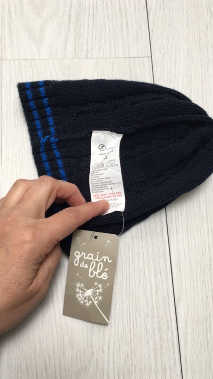 Bonnet neuf bleu marine laine 50 grain de blé - photo numéro 2