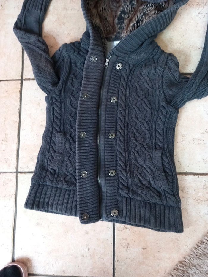Belle veste avec capuche..bien chaude avec doublure intérieure en coton Fermeture devant avec bouton et fermeture éclair