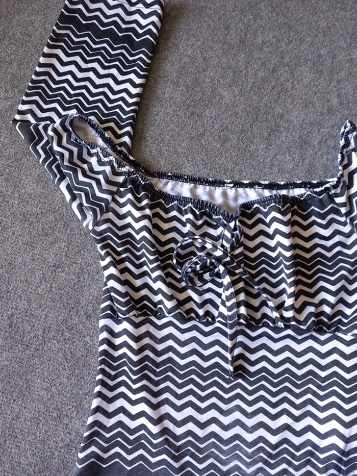 Noir et blanc Tunique souple et stylé avec cordon de serrage autour du cou qui descend sur les épaules
