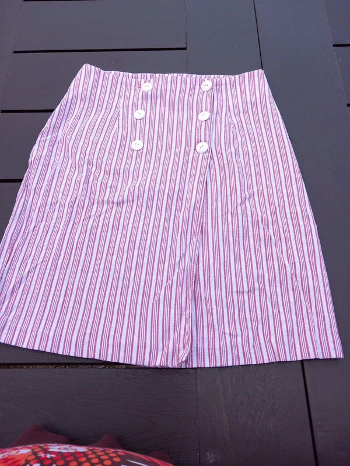 Belle jupe avec bouton sur le devant Non transparente Longueur totale 48 cm Taille mesurée à plat De gauche à droite 36 cm