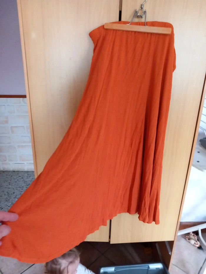 En coton elasthan Aisselle gauche à droite 86 cm Longueur totale 84 cm Arrive sous les fesses Jupe élastique à la taille Longueur totale 87 cm Coupe ample Fabrication Française ..acheter en boutique à Paris pour une cérémonie..
