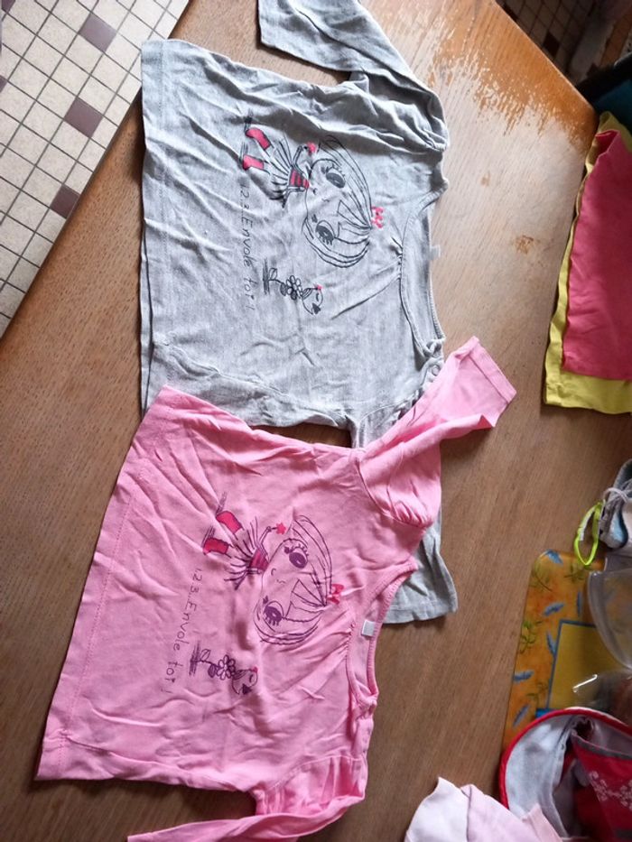 2 Tee-shirt de la même collection en coton 1 gris 1rose