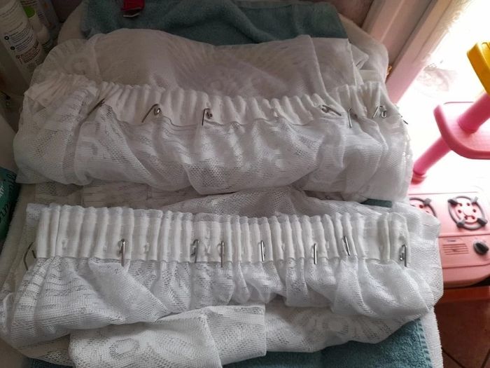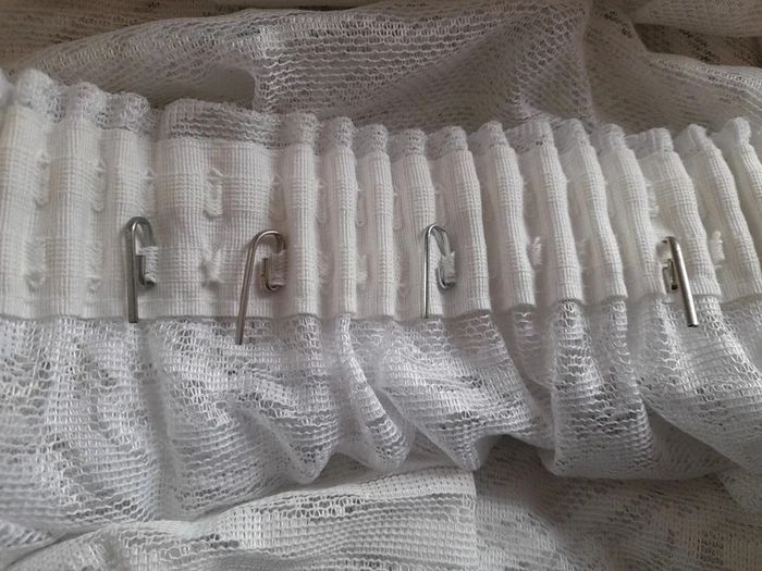 60 crochets + bande à coudre sur votre rideau pour accrocher à la tringle 2 bande de 2 mètres soit 4 mètres au total A couper et à froncé selon votre choix
