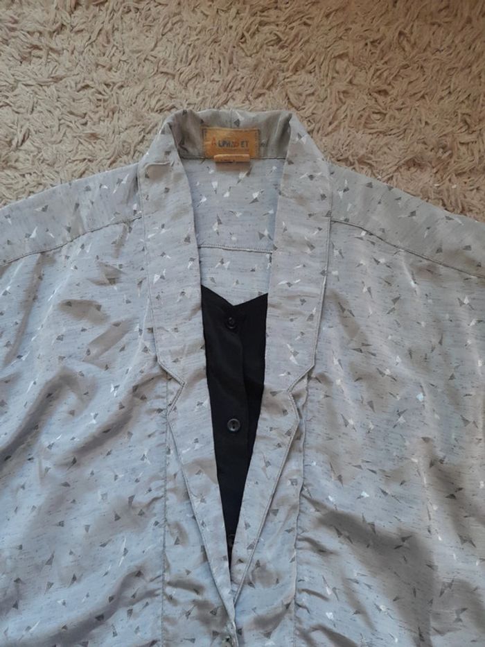 Belle tunique noire et gris En polyester Col fantaisie tout cousu..