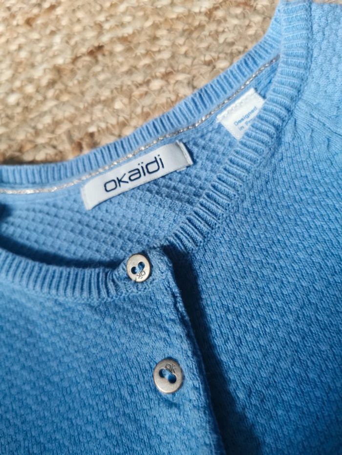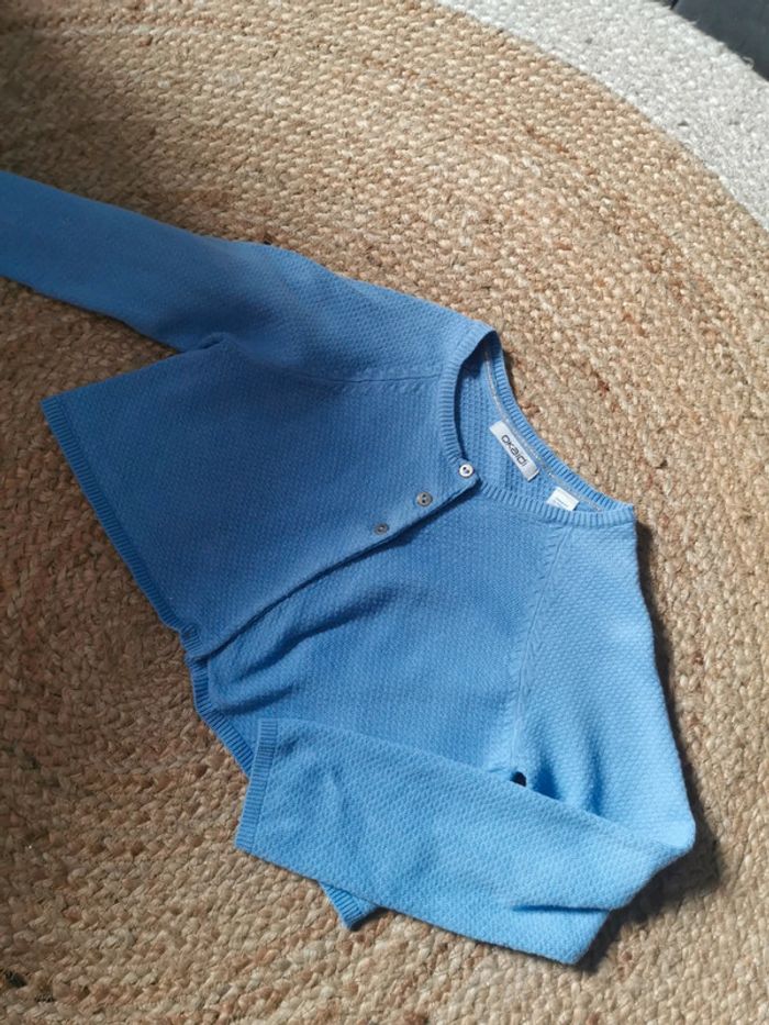 Gilet court okaidi bleu ciel gaufré a boutons 6 ans super etat Pour aller au dessus dune robe parfait Taille bien
