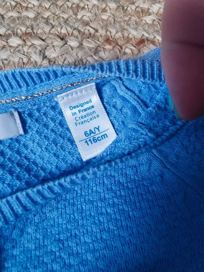 Gilet court okaidi bleu ciel gaufré a boutons 6 ans super etat - photo numéro 5
