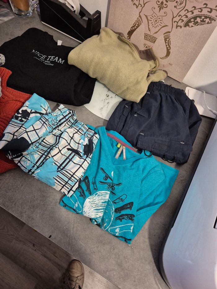 Attention mélange de taille. 1 pull 4-5 ans, 2 pull 5-6 ans, 1 t-shirt 5 ans, 1 maillot de bain 5 ans, 1 pantacourt 5 ans et 1 T-shirt 8 ans