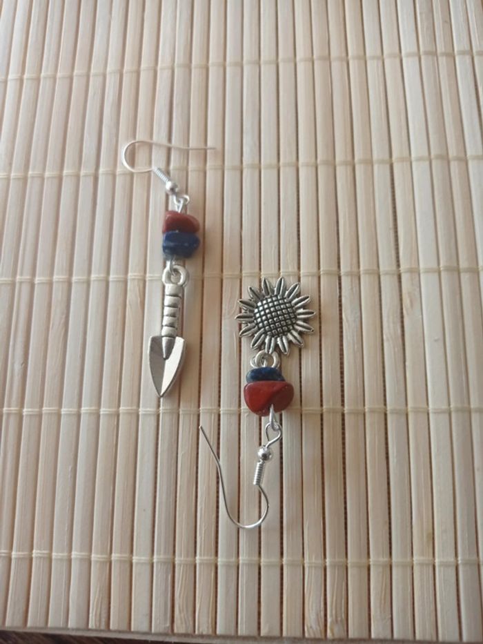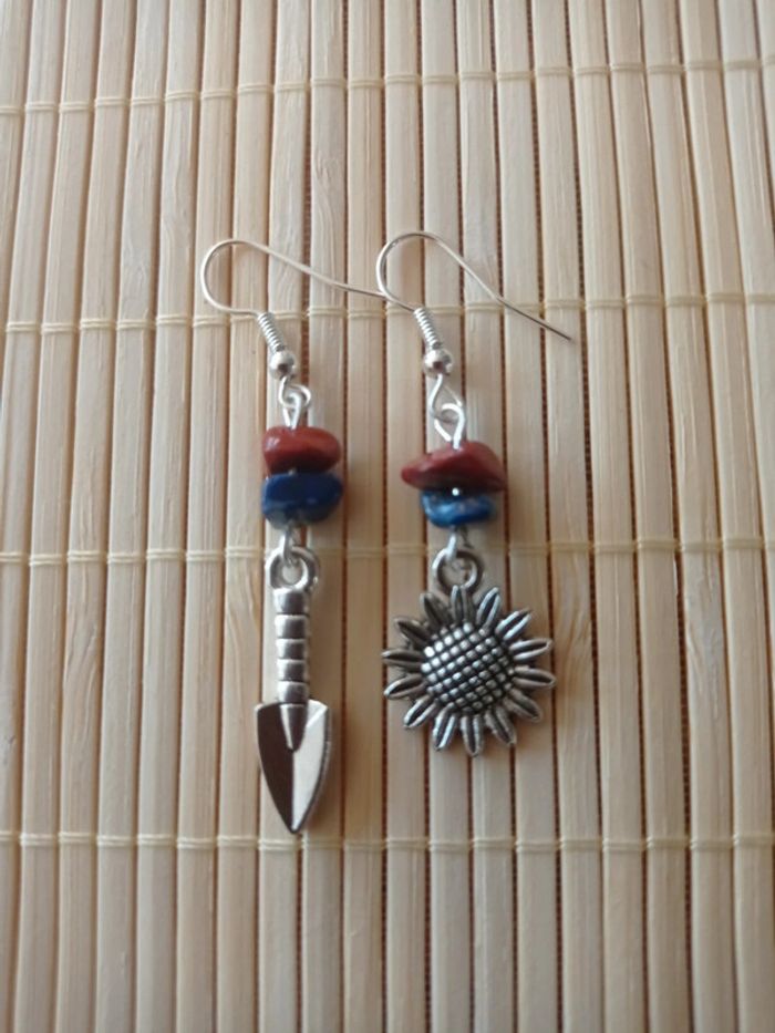 Boucles d'oreilles pelle, tournesol et pierres naturelles - photo numéro 1