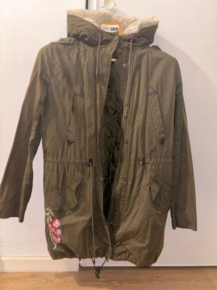 Modèle intemporel Beaucoup porté mais encore portable Super à l’aise 4 poches Intérieur fourrure chaud amovible vous pouvez vous servir de la parka comme manteau et ou coupe vent N’hésitez pas à aller voir mon dressing et vous abonner je poste des articles régulièrement :) Réduction si plusieurs articles achetés :)