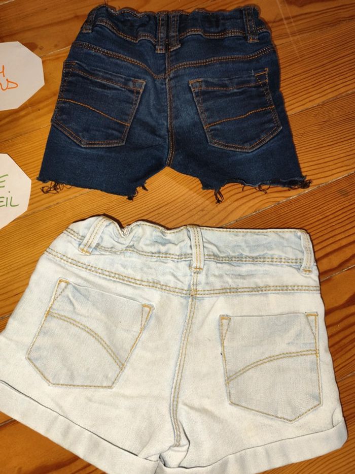 Lot deux shorts en jean, un bleu ciel et un marine. Très bon état. Marque : Tape à l'oeil Taille : 4 ans #celine76590fille4ans