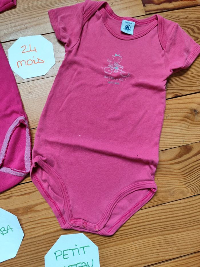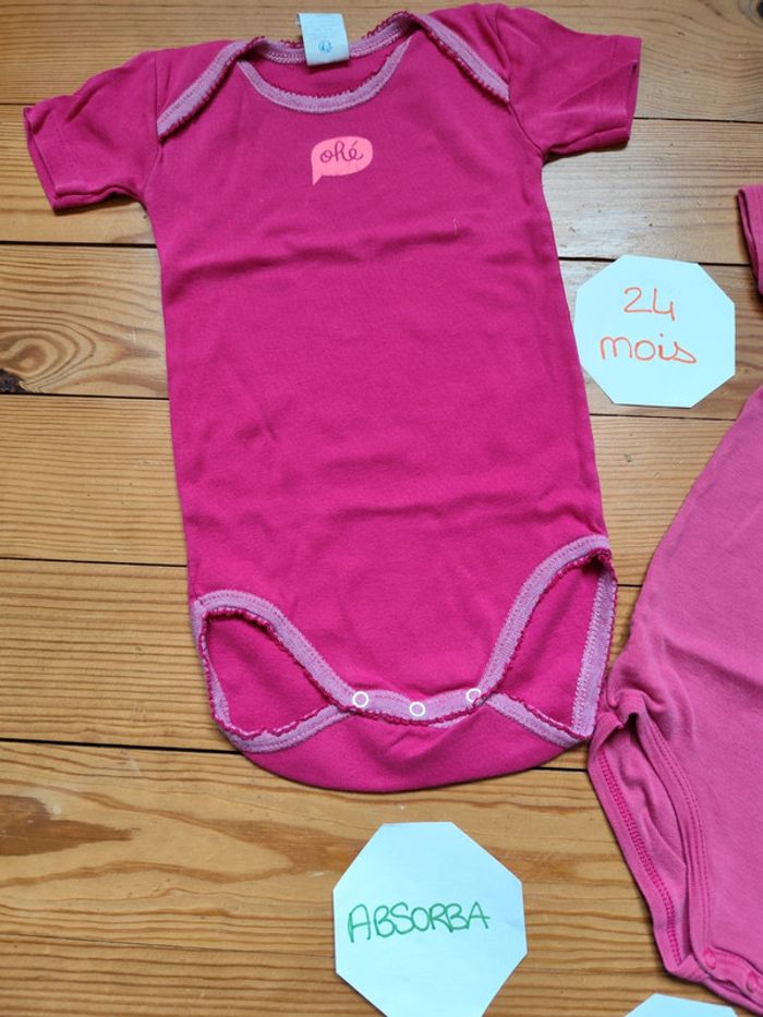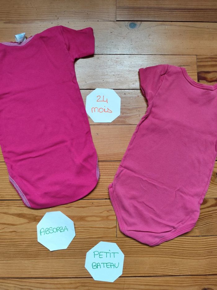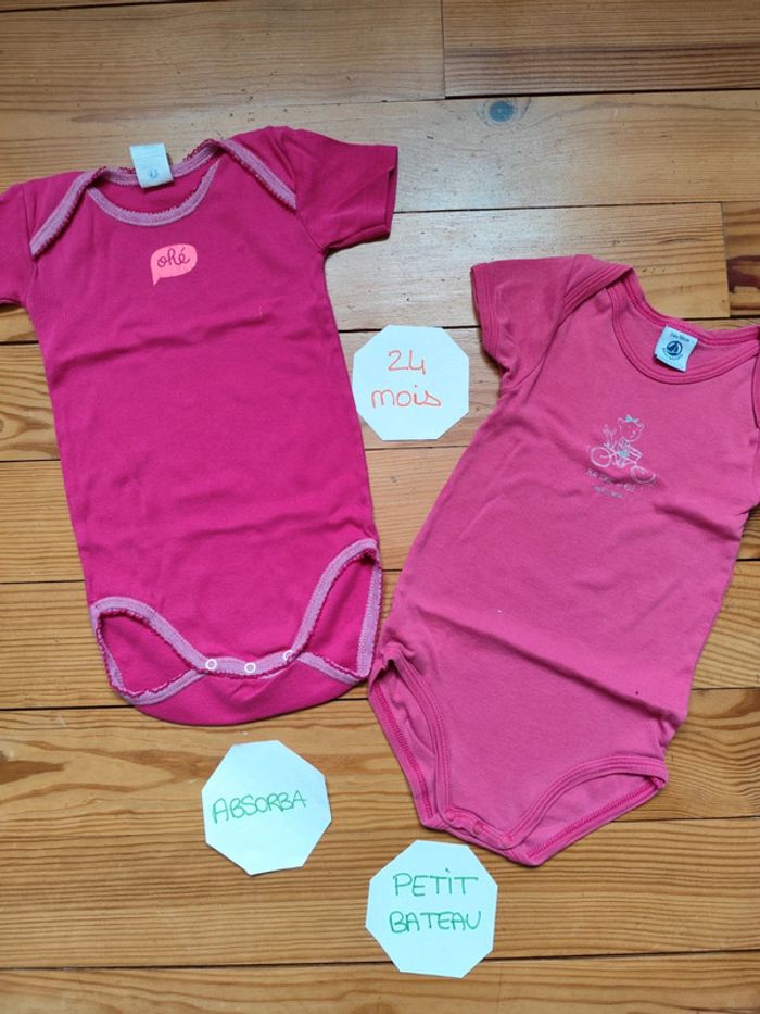 Lot 2 bodies manches courtes, rose fushia, pression métal. Très bon état. Marque : Absorba / Petit Bateau Taille : 24 mois #celine76590fille24mois