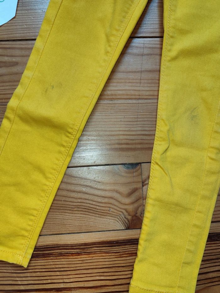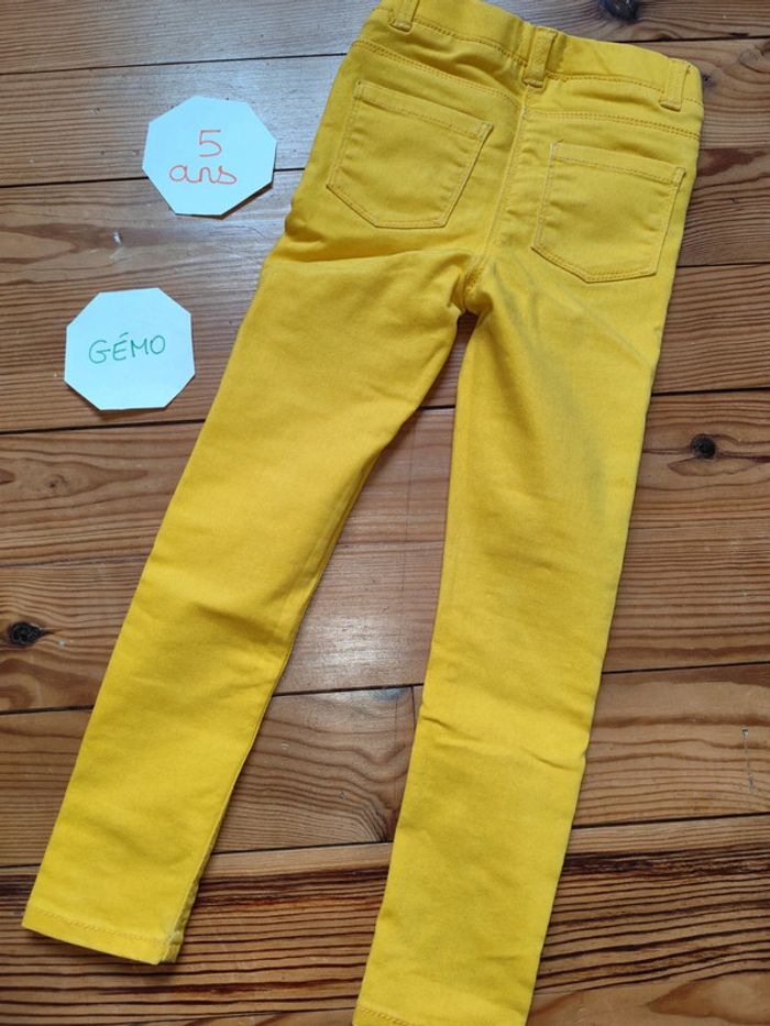 Jean coupe skinny, taille élastique, jaune. Bon état (tâche au niveau des genoux). Marque : Gémo Taille : 5 ans #celine76590fille5ans