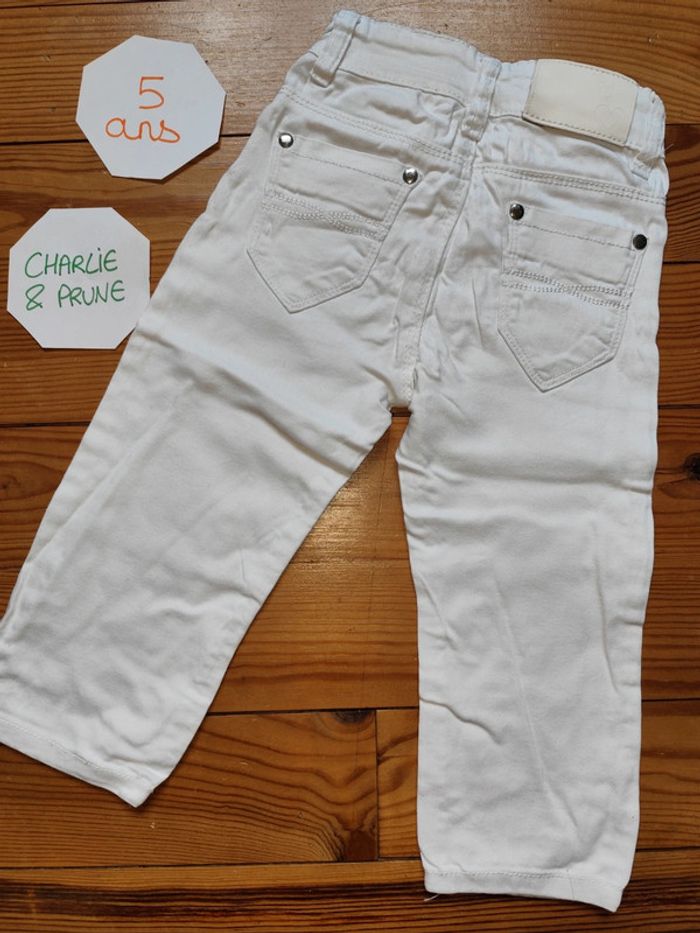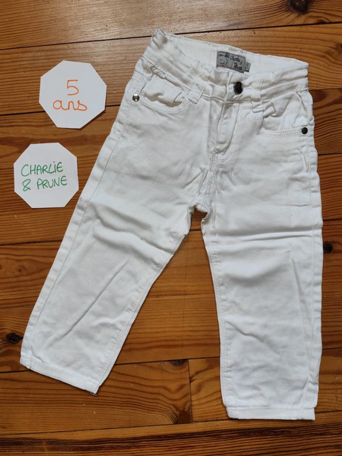 Jean, fermeture éclair et bouton, blanc. Très bon état. Marque : Charlie & prune Taille : 5 ans #celine76590fille5ans