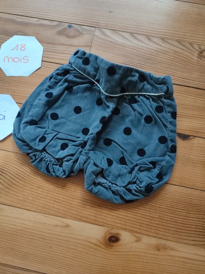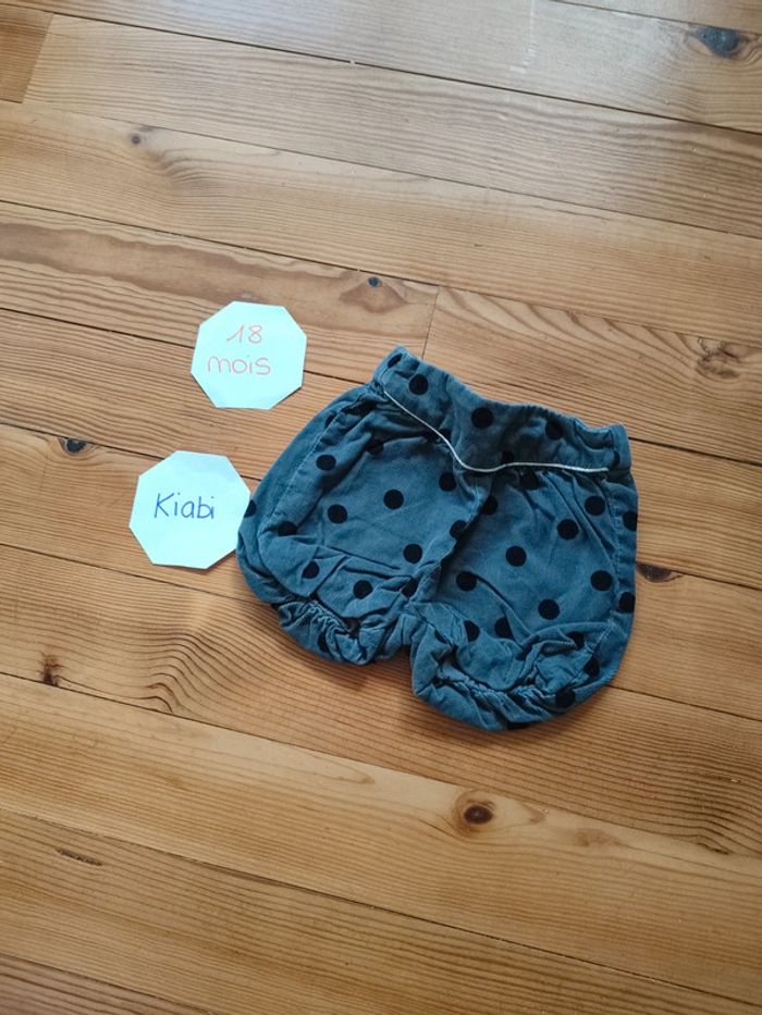 Short en velours, couleur gris à pois noir. Taille élastique. Très bon état. Marque Kiabi Taille 18 mois (77/82 cm) #celine76590fille18mois