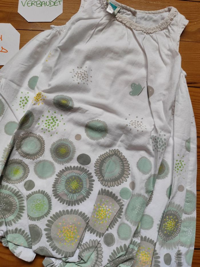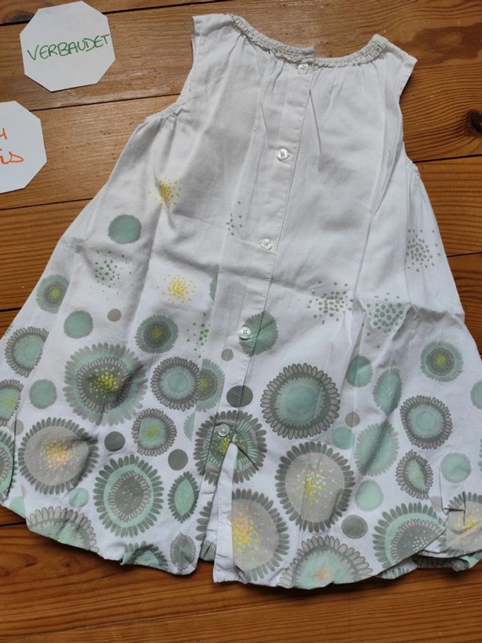 Robe été doublée sans manche, boutonnée dans le dos, blanche avec motifs verts. Très bon état. Marque : Verbaudet Taille : 24 mois #celine76590fille24mois