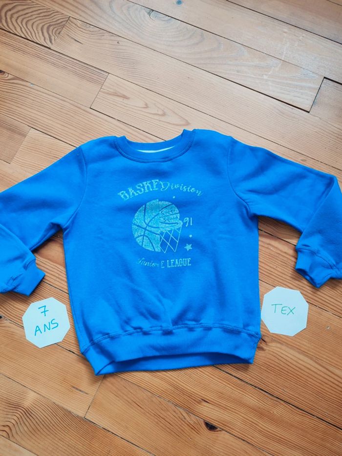 Sweat Intérieur doux, couleur bleu électrique avec motifs. Très bon état. Marque TEX Taille 7/8 ans #celine76590garçon7ans