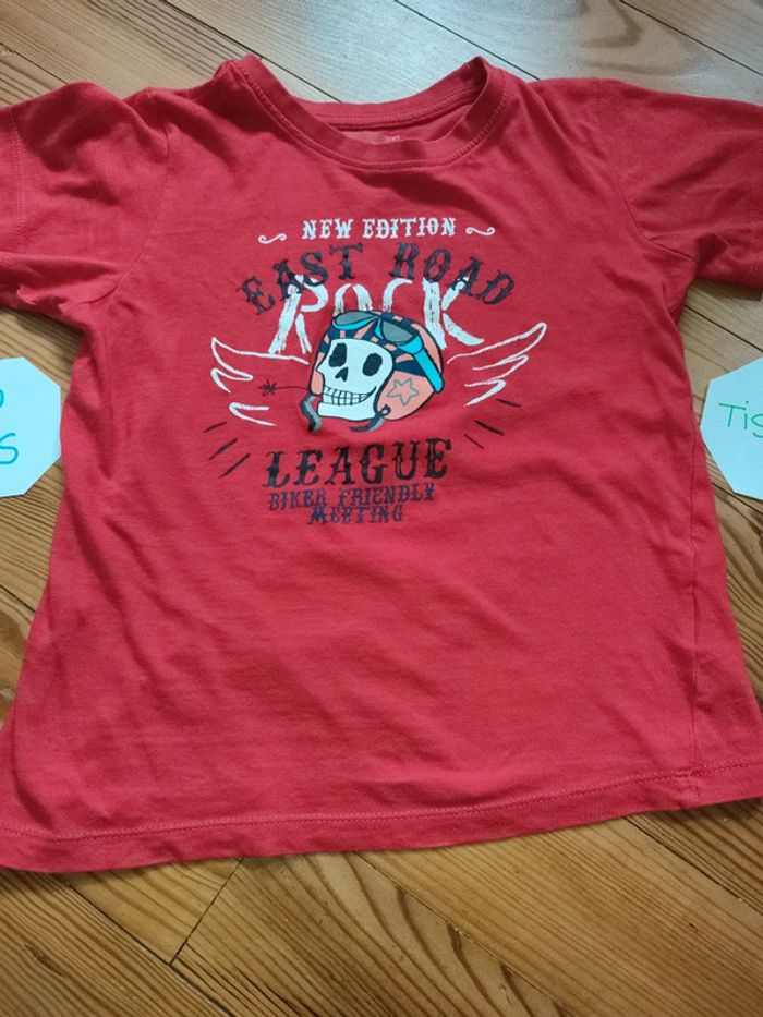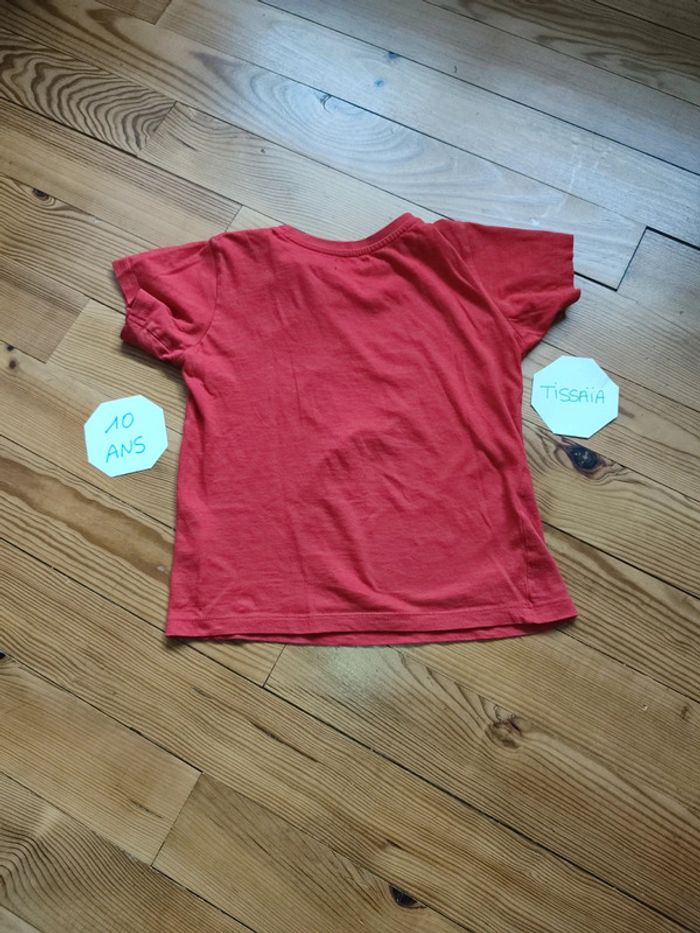 Tee shirt manches courtes, rouge avec motifs. Très bon état. Marque : Tissaia Taille : 10 ans #celine76590garçon10ans