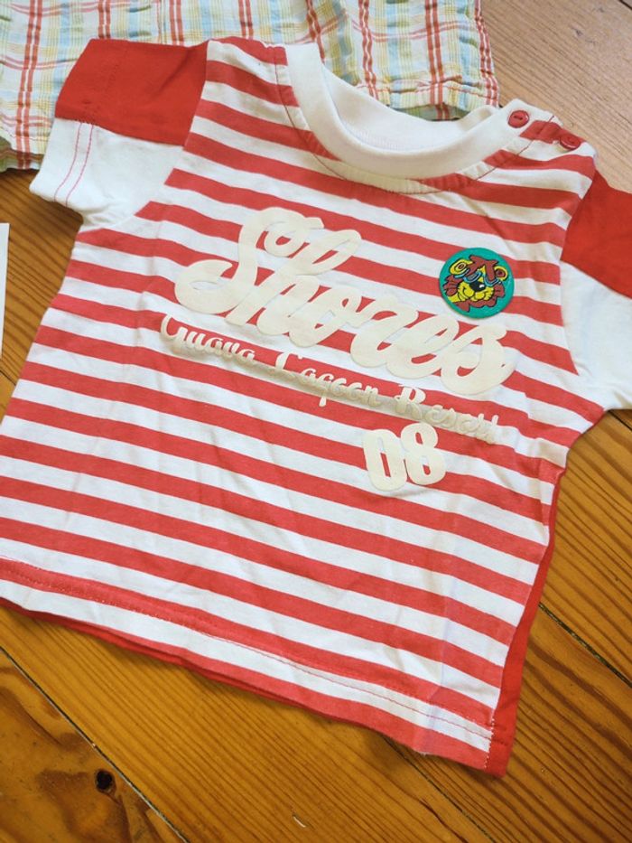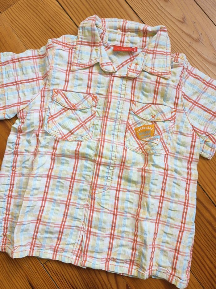 Lot 18 mois garçon comprenant : * 1 tee shirt manches courtes rouge et blanc * 1 chemise manches courtes blanches à carreaux (Tissaia) Le lot 1.5€ #celine76590garçon18mois