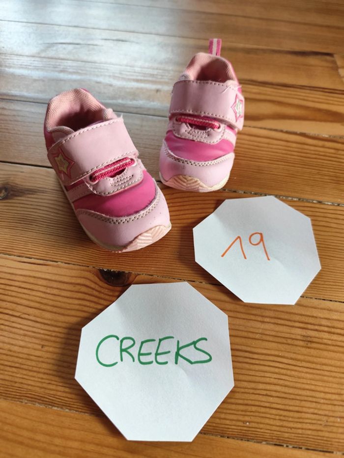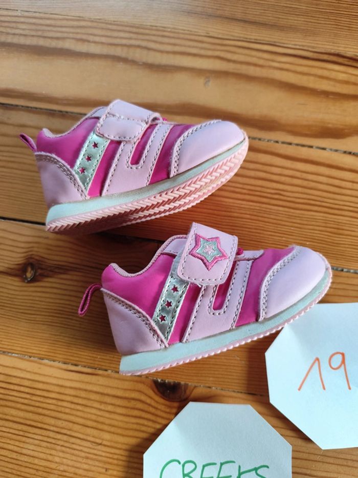 Baskets à scratch, rose clair et fushia avec motifs argentés. Bon état général. Taille 19 Marque Creeks #celine76590fillechaussures
