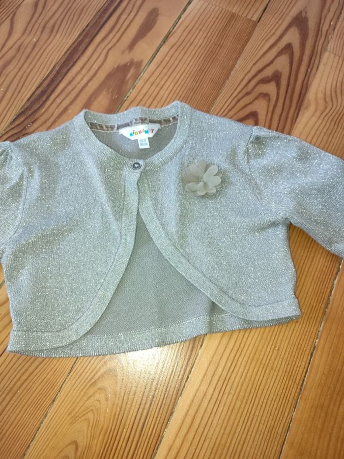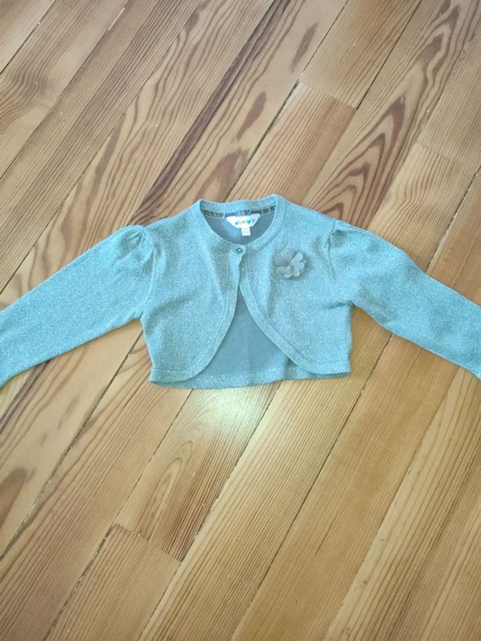 Gilet boléro manches longues gris pailleté avec fleur. Très bon état Marque : Kidkanaï Taille : 24 mois (86cm) #celine76590fille24mois
