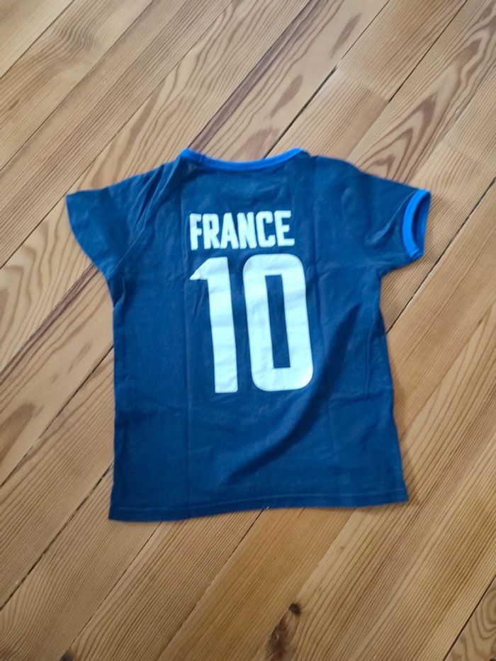 Tee shirt manches courtes bleu avec motifs Équipe de France. Très bon état. Marque : Kiabi Taille : 8 ans #celine76590garçon8ans