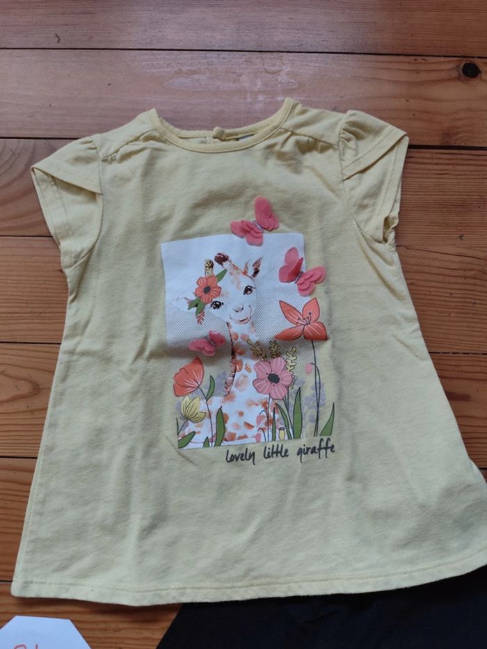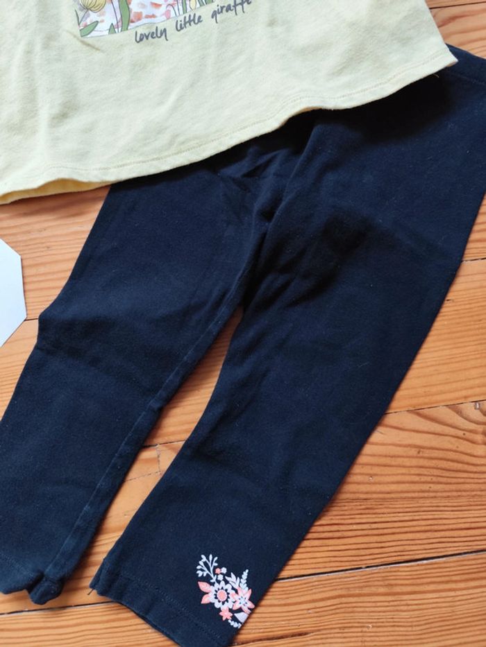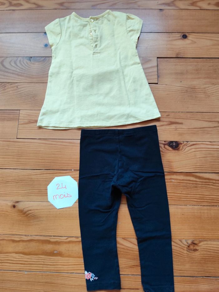 Ensemble tunique manches courtes, jaune avec motifs girafe (boutonnée dans le dos) + legging noir. Très bon état Marque : inconnu Taille : 24 mois #celine76590fille24mois