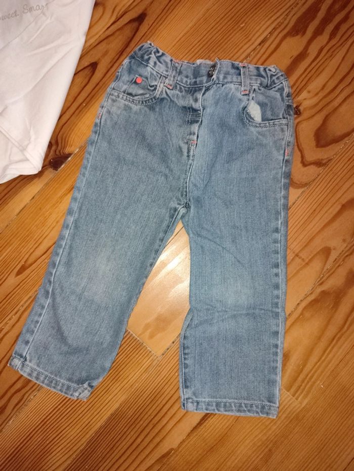 Ensemble tee shirt manches courtes blanc et jean bleu avec pression. Très bon état. Marque : In Extenso Taille : 2 ans (92cm) #celine76590fille24mois