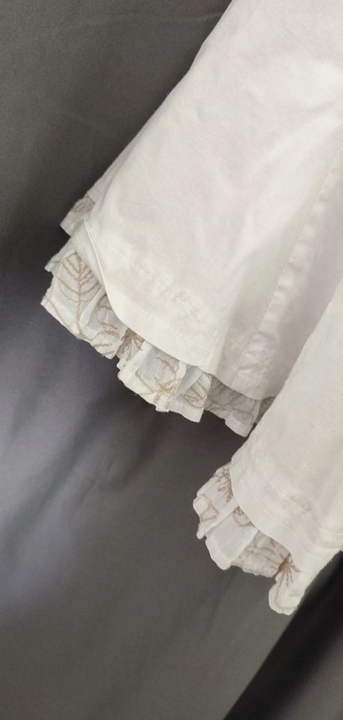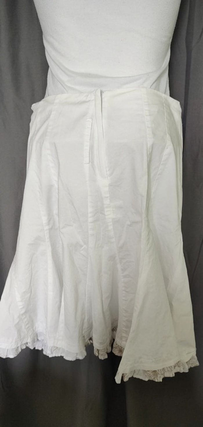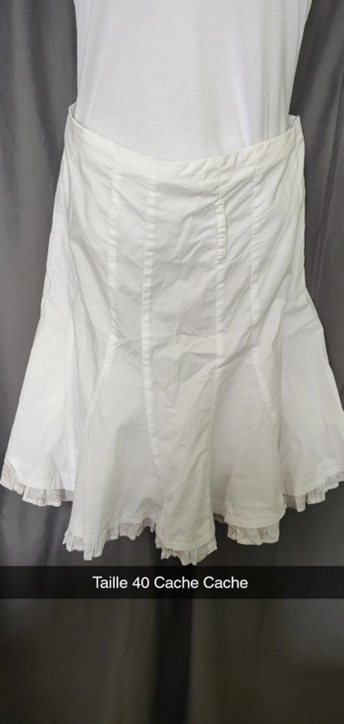 Jupe type cérémonie, longueur au dessus du genou, couleur blanche et motif beige. Très bon état Marque Cache Cache Taille 40 #celine76590femmetaillel #celine76590femmetaille40