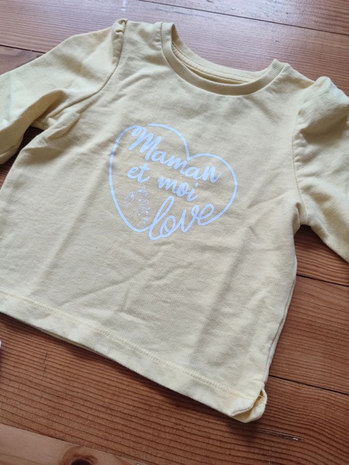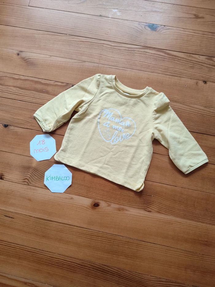 Pull sweat léger. Couleur : jaune avec motifs blanc. Très bon état, pas de trous ni tâche. Marque Kimbaloo Taille 18 mois #celine76590fille18mois
