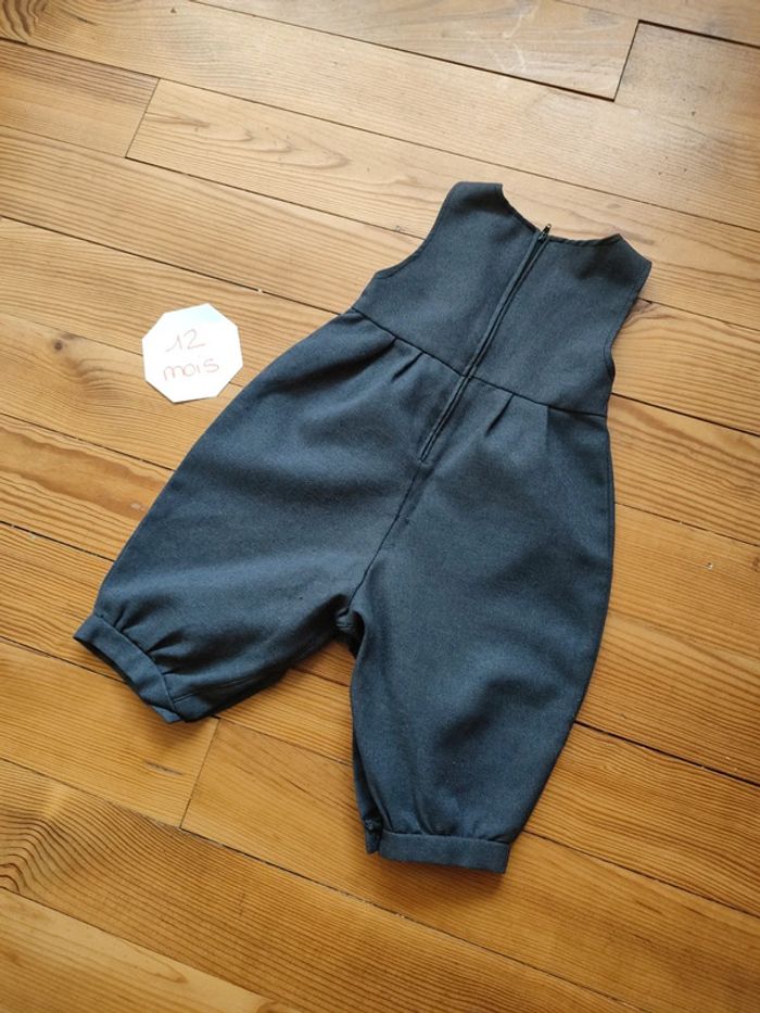 Salopette sans manche, matière légère, fermeture boutonnée entre jambes et zippée dans le dos, grise. Très bon état. Marque Inconnue Taille 12 mois #celine76590fille12mois