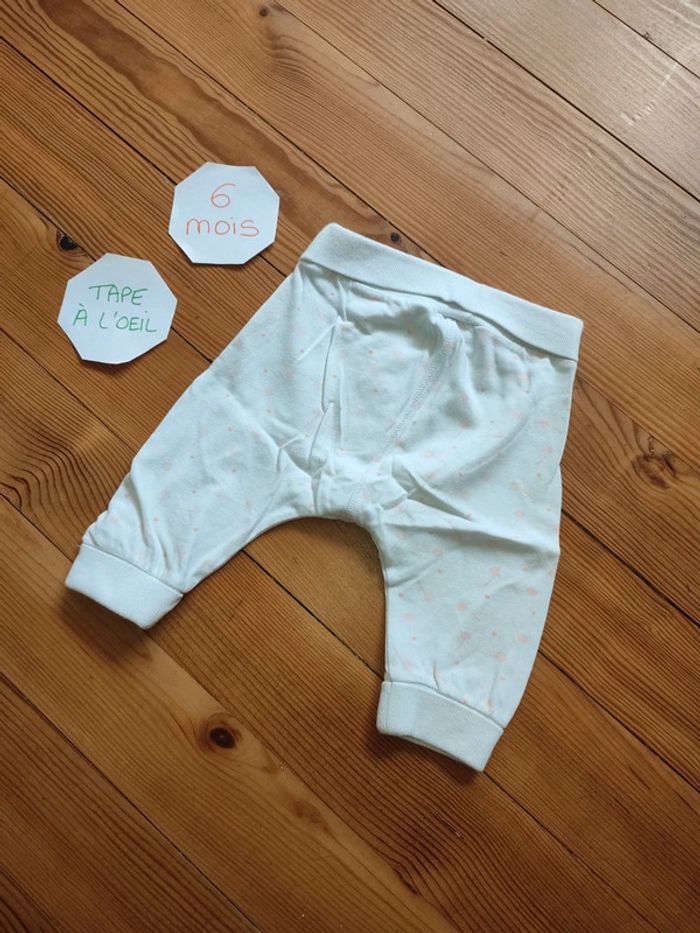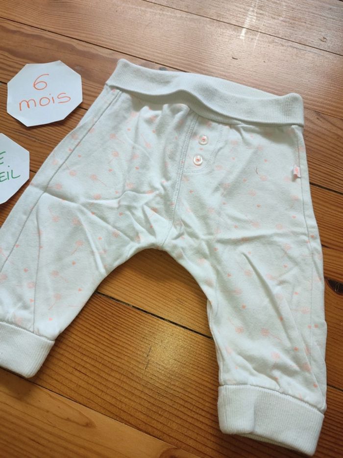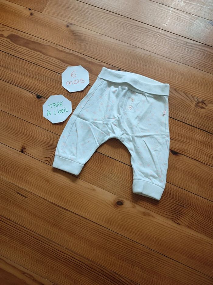 Jogging, blanc avec motifs orange. Très bon état. Marque : Tape à l'oeil Taille 6 mois #celine76590fille6mois