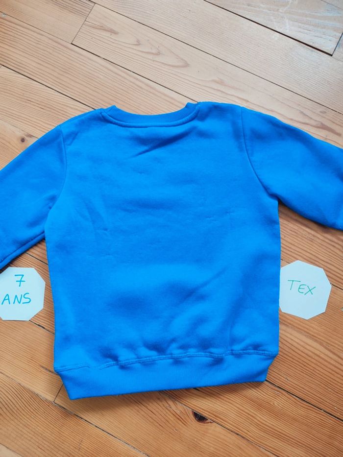 Sweat Intérieur doux, couleur bleu électrique avec motifs. Très bon état. Marque TEX Taille 7/8 ans #celine76590garçon7ans
