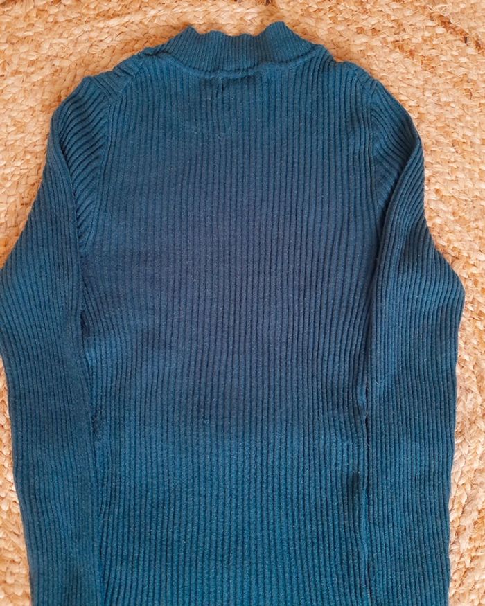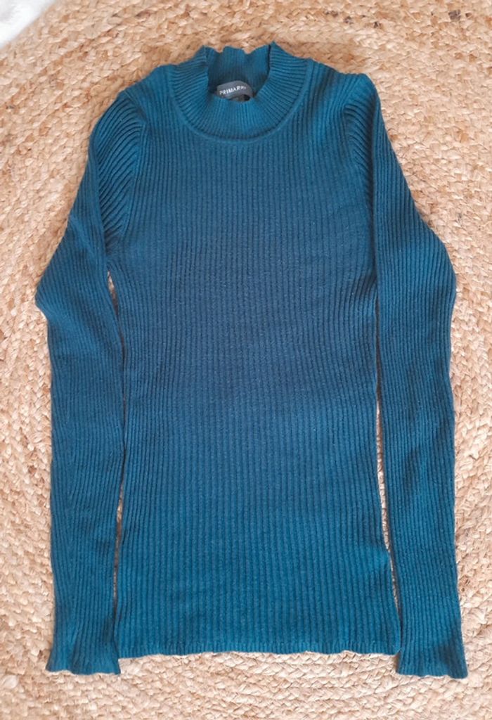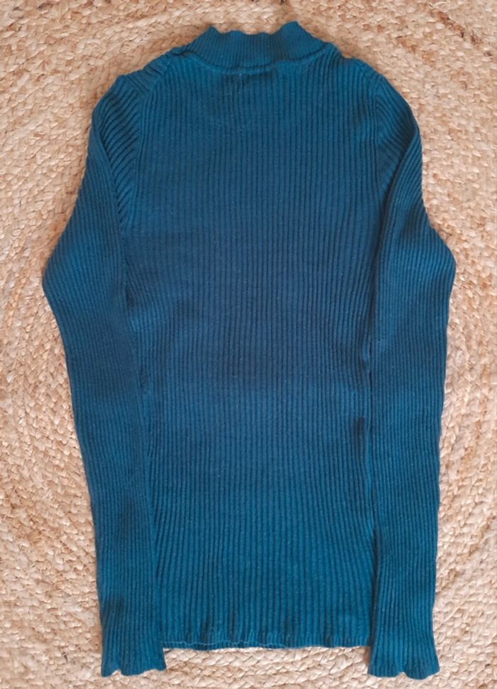 T-shirt côtelé épais à col montant de la marque Primark Taille : XXS Couleur bleu canard En très bon état