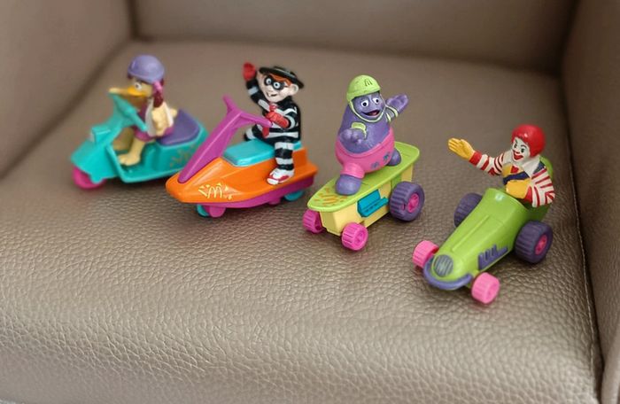 Lot rev UPS 1992 Scooter voiture Ronald vendu, Grimace, hamburglar, birdie mcdo mcdonalds macdo happy meal figurine collector jouet vintage collection maison non fumeur et sans animaux n'hésitez pas à faire des lots