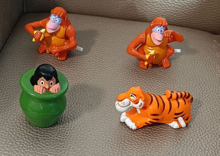 Lot figurines Mowgli, shere khan tigre, roi louie louis singe orang outan Figurine livre de la jungle disney Mcdo mcdonalds 1990 macdo happy meal vintage collection maison non fumeur et sans animaux n'hésitez pas à faire des lots