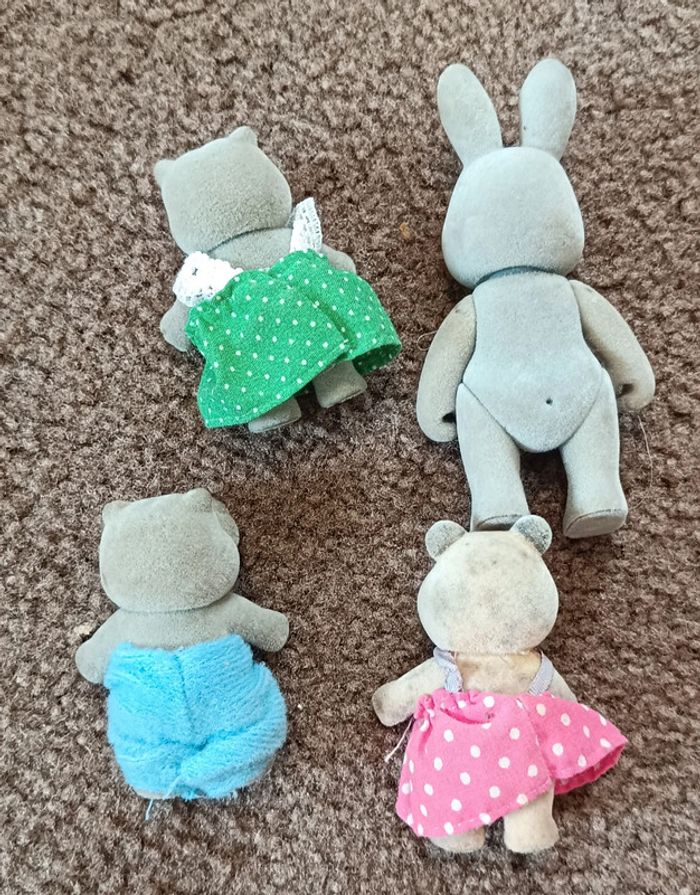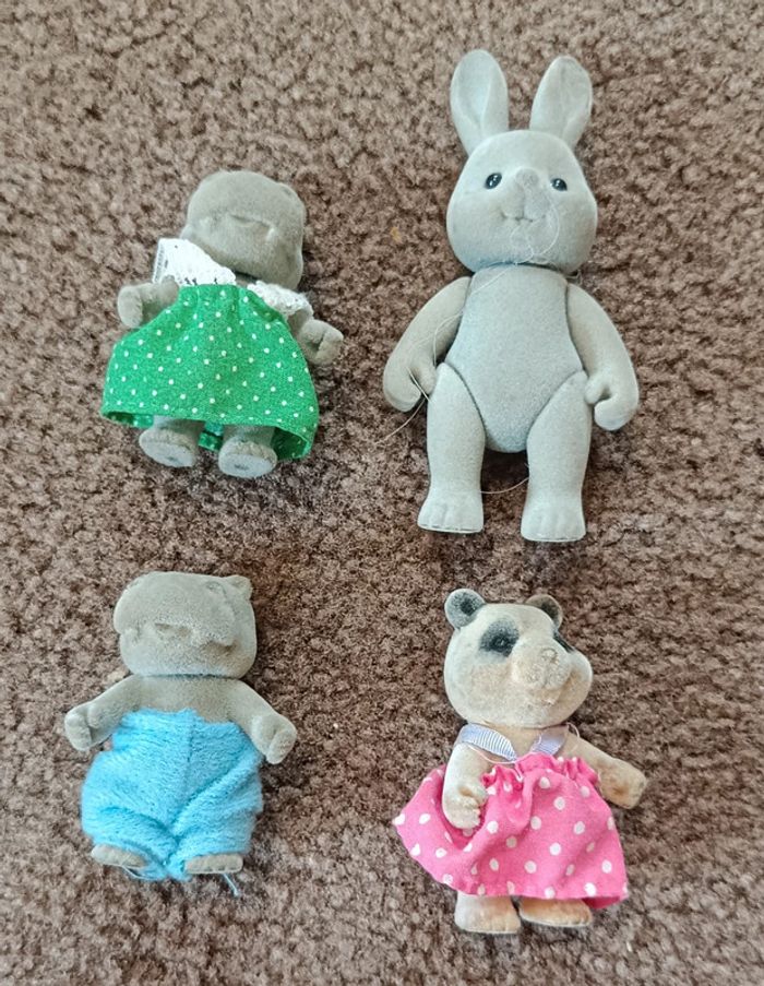 SYLVANIAN FAMILIES FOREST FAMILY Lot 4 personnages : lapin, hippopotame, raton laveur, panda enfant fille garçon Petits malins sylvanian family forest families simba Figurine floqué vinyle Figurine collector jouet poupée peluche vintage collection maison non fumeur et sans animaux n'hésitez pas à faire des lots