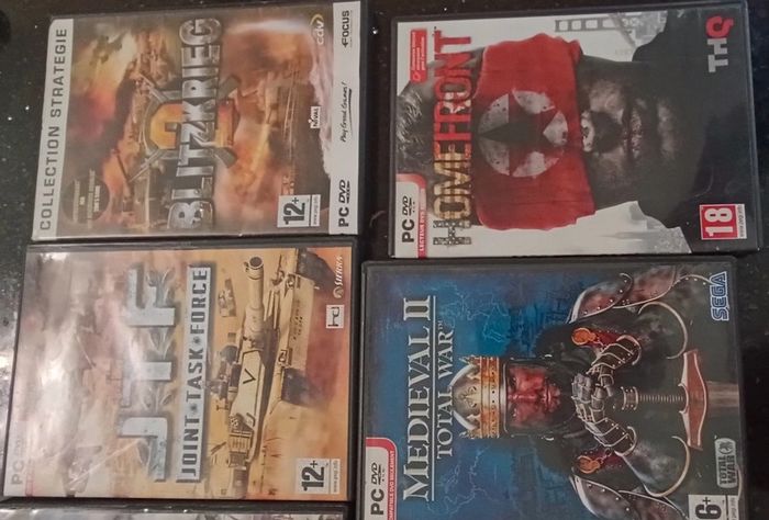 Lot jeu Pc : 1 euro le jeu, 3 euros les 4 jeux, - medieval II total war sega avec livret : VENDU - jtf joint task force avec livret VENDU - cossacks II 2 battle for europe avec livret VENDU - homefront avec livret - medial of honor batailles du pacifique avec livret - Blitzkrieg comlection strategie avec livret - Imperial Glory sans livret - Cossacks une nouvelle ère commence avec livret VENDU - impérial glory maison non fumeur et sans animaux