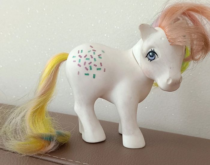 My little pony vintage G1 Wedding Bell Pony - Confetti collection jouet rétro baby Euro exclusive Hasbro 83 1983 tenue mariée + 3 chaussures Little poney pony petit poney Hasbro jouet ancien figurine articulée figurine collector jouet vintage collection maison non fumeur et sans animaux n'hésitez pas à faire des lots