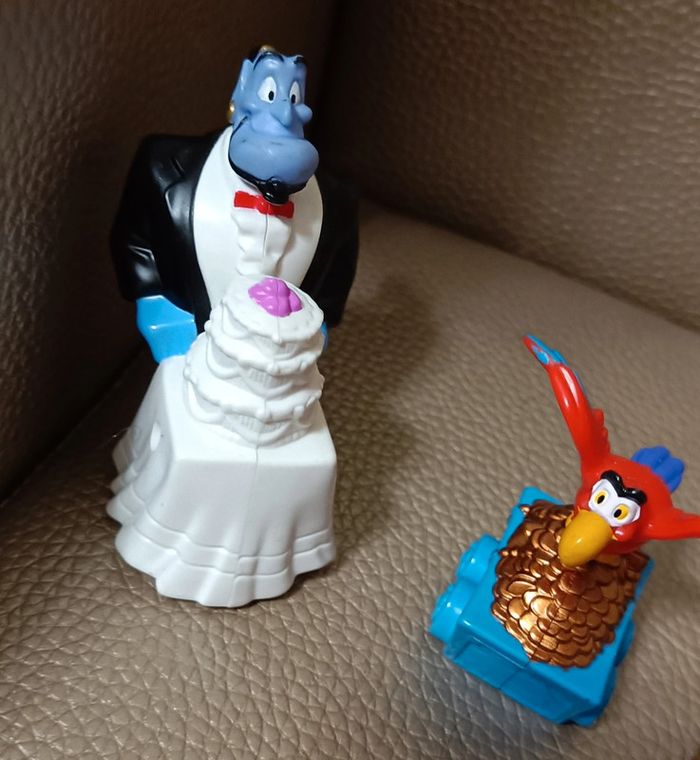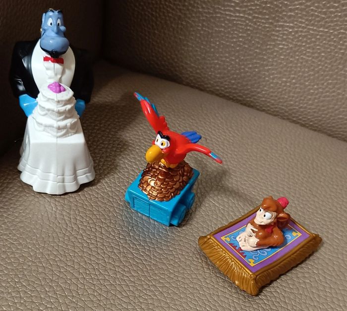 Lot Aladin vidéo première 1997 alladin Aladdin Disney Abu singe + perroquet lago + génie happy meal mcdo macdo mac donald figurine maison non fumeur et sans animaux n'hésitez pas à faire des lots figurine collector jouet poupée peluche