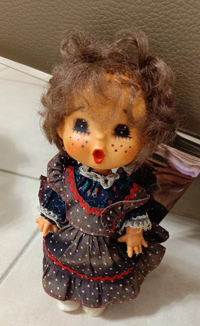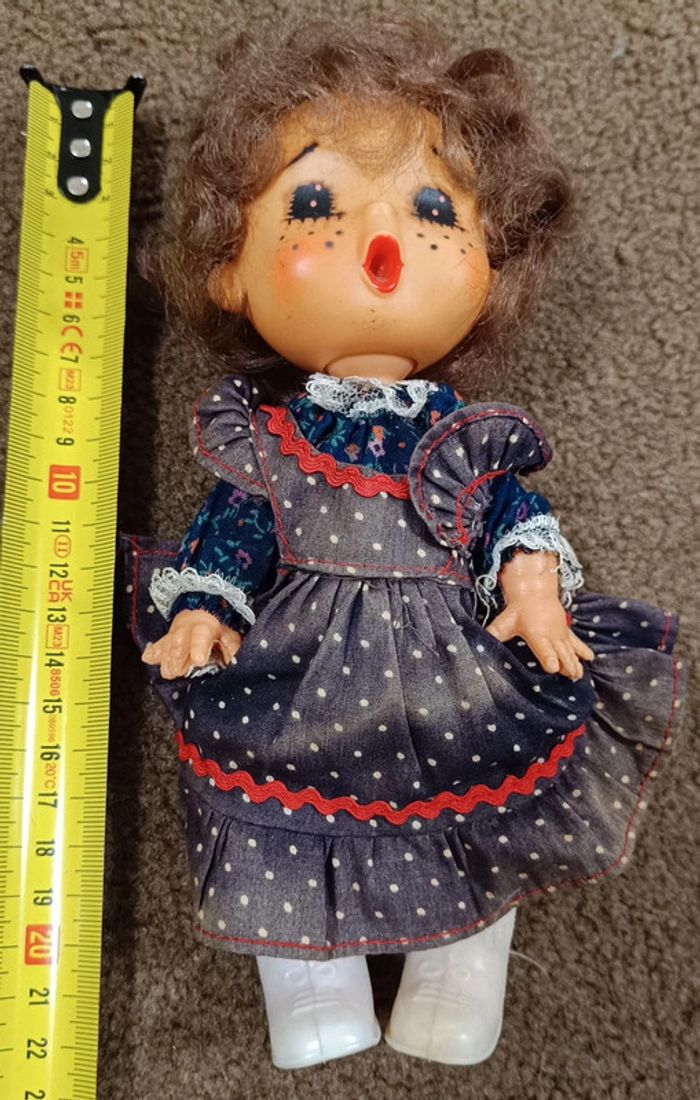 vintage années 1970 Poupée en plastique Tête en caoutchouc Gros yeux Taches de rousseur Visage Sekiguchi Gege Comme 8,66'', Robe/Chaussures originales Kiki maison non fumeur et sans animaux n'hésitez pas à faire des lots figurine collector jouet poupée peluche