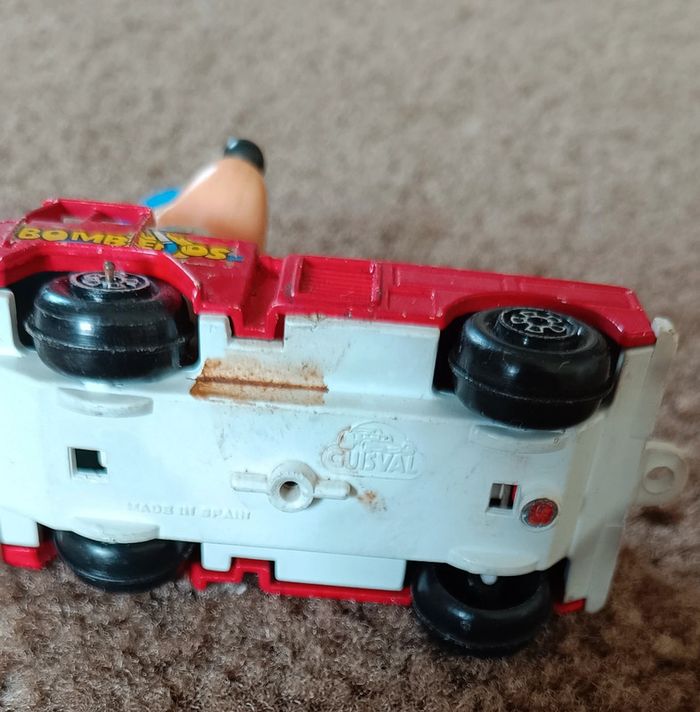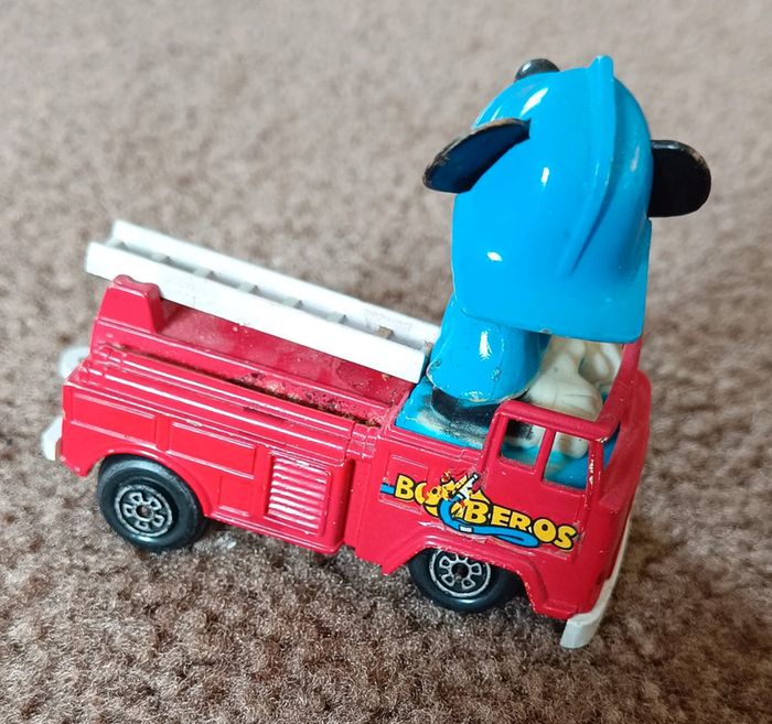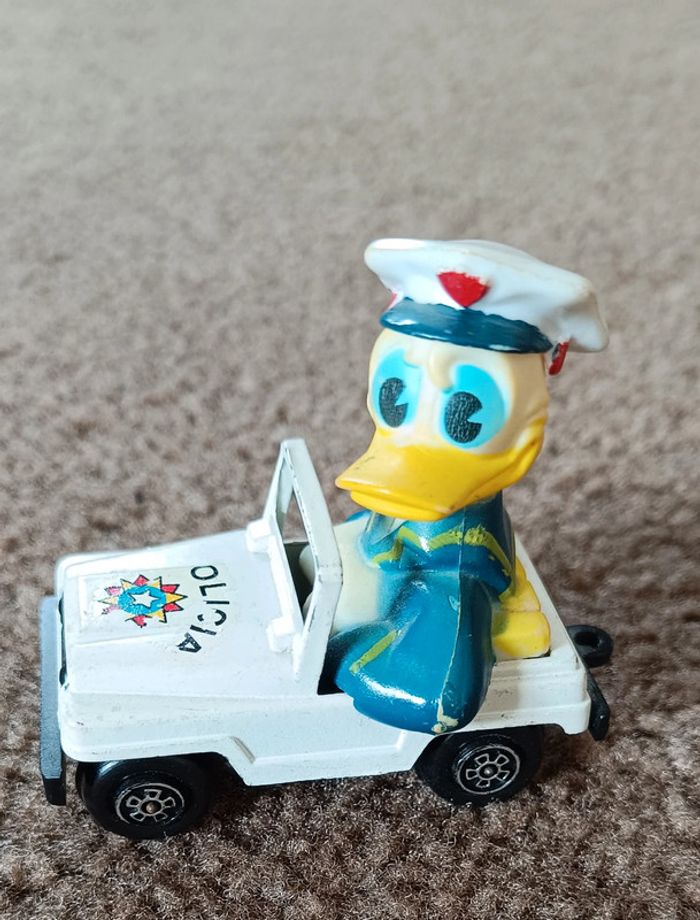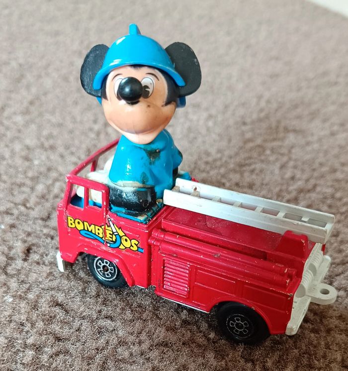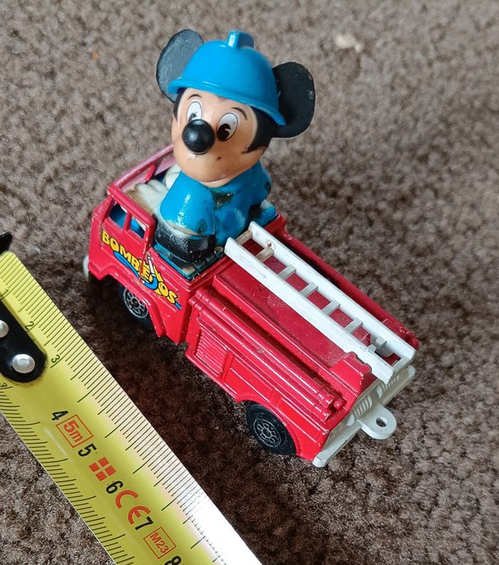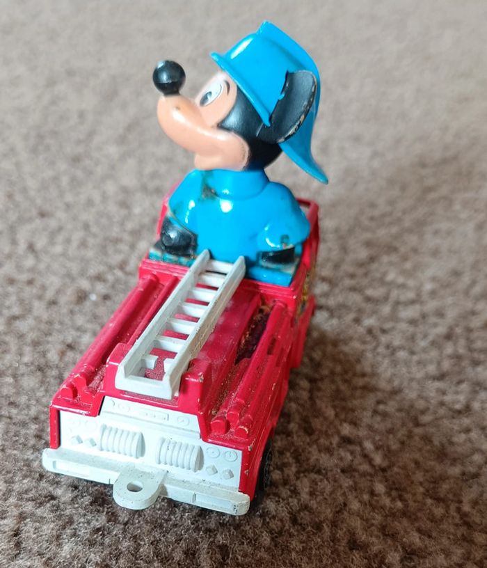 - Donald policier - Guisval Mickey Mouse Fire Engine - Red - Made in Spain Camion pompier rouge avec échelle - Mickey voiture orange circuit course numéro 2 ma sur nez et casque vintage collection maison non fumeur et sans animaux n'hésitez pas à faire des lots figurine collector jouet poupée peluche