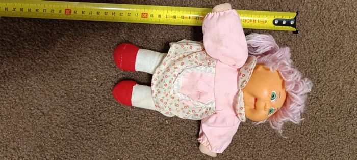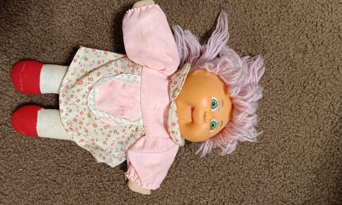 poupée style cabbage Corps chiffon tête plastique cheveux rose mauve Style patch doll kids patapouf Yeux bleus Poupee vintage collection collector maison non fumeur et sans animaux n'hésitez pas à faire des lots