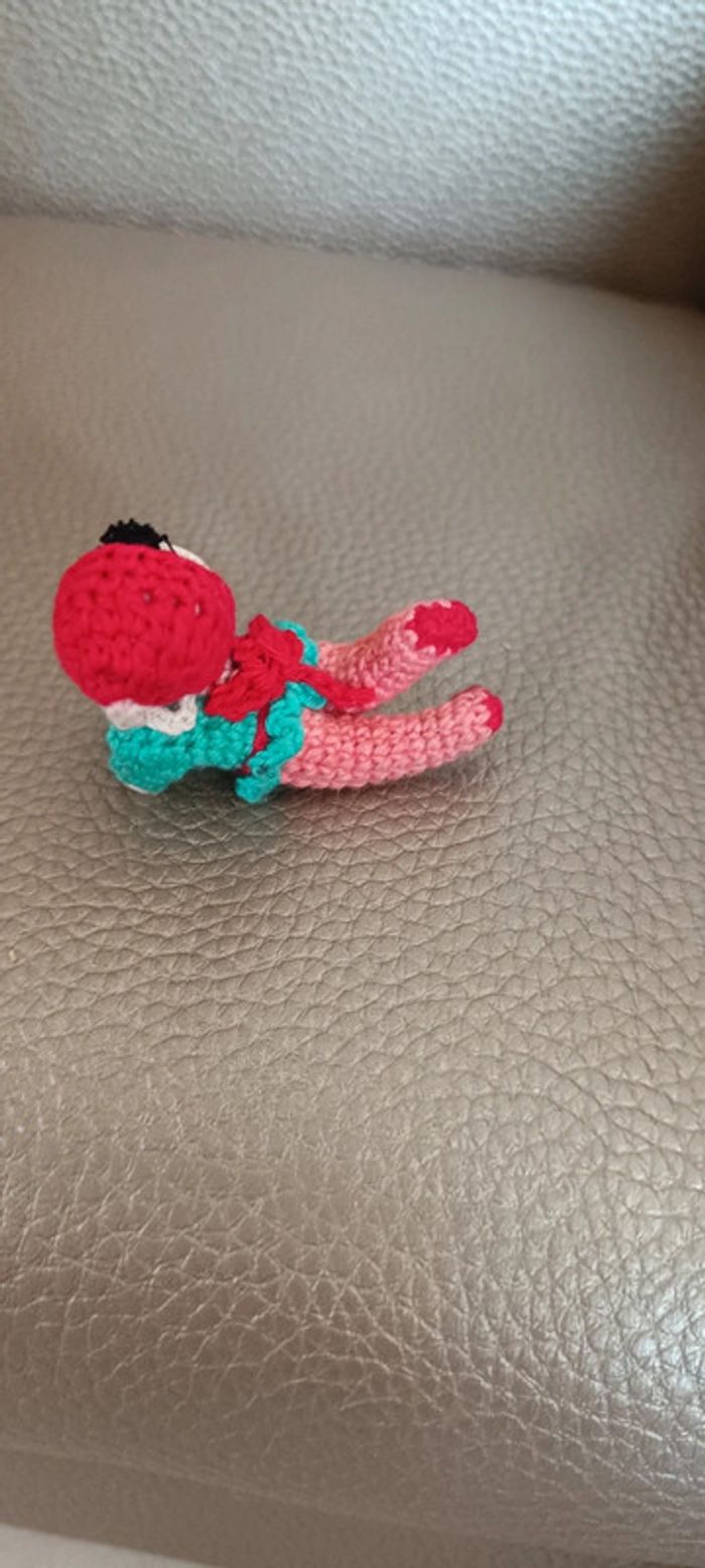 1970's Amigurumi Shanghai Chine faits à la main crocheté-face poupées Années 1970 Amigurumi Shanghai Chine faites à la main poupées au crochet crocheté-face. Une très délicieuse paire de poupées vintage Amigurumi crochet. Ils sont une véritable œuvre d’art et très bien faite. Ils sont crochetés à la main à partir de fil de coton, et ont des costumes colorés lumineux, farcis dur avec un médium inconnu. Leurs visages en soie sont peints à la main et leurs détails sont cousus à la main et assez complexes. Ces petites poupées miniatures feraient un doux cadeau original ou des décorations de Noël très spéciales. Amigurumi est un mot japonais qui signifie crocheté ou tricoté (ami) poupée farcie (nuigurumi). On dit qu’il est originaire du Japon au début des années 1900. Shanghai Chine a produit beaucoup de ces poupées entre les années 1960 et 1980. Le véritable amigurumi est une très petite figurine. Aujourd’hui, il est très populaire dans la culture japonaise kawaii (mignon). jouet ancien figurine figurine collector jouet vintage collection maison non fumeur et sans animaux n'hésitez pas à faire des lots
