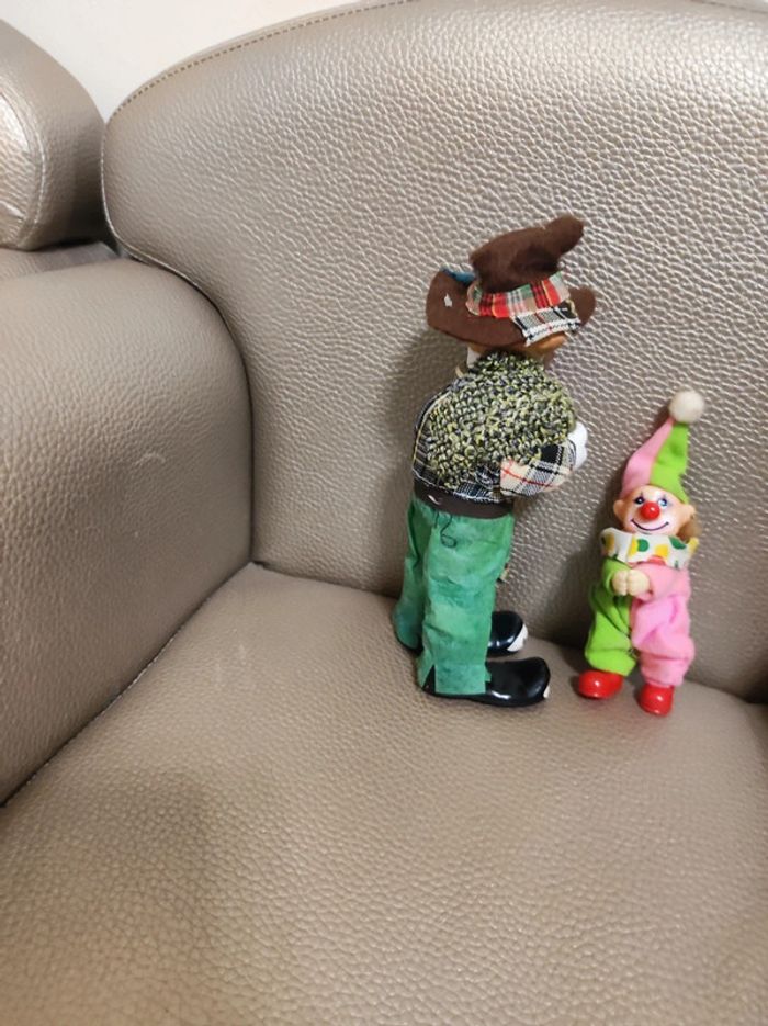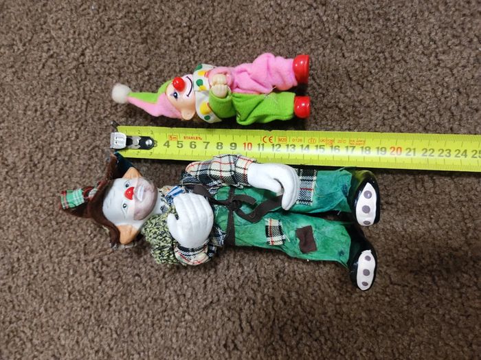 lot clown vintage pierrot - un avec filet pêcheur - l'autre s'accroche au doigt rose et vert vintage collection collector maison non fumeur et sans animaux n'hésitez pas à faire des lots
