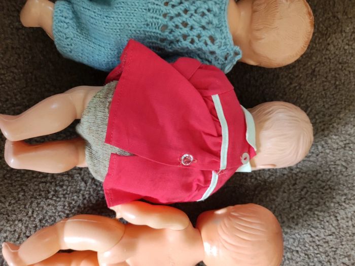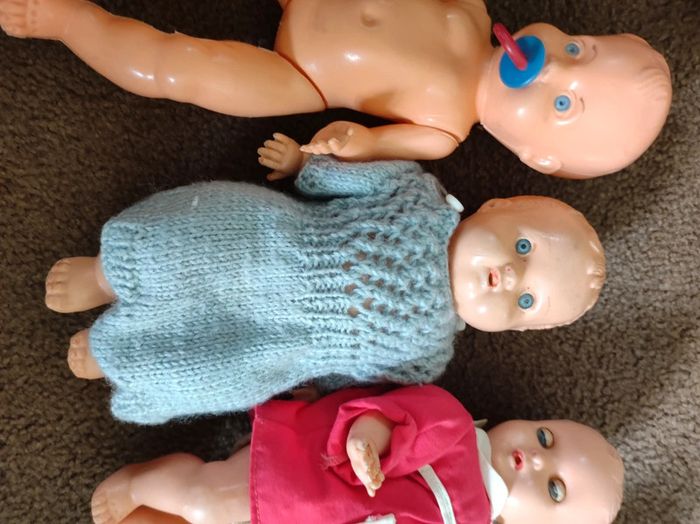 lot 4 anciennes poupée ancienne poupée avec tétine blue box, poly flex france... vintage collection collector maison non fumeur et sans animaux n'hésitez pas à faire des lots