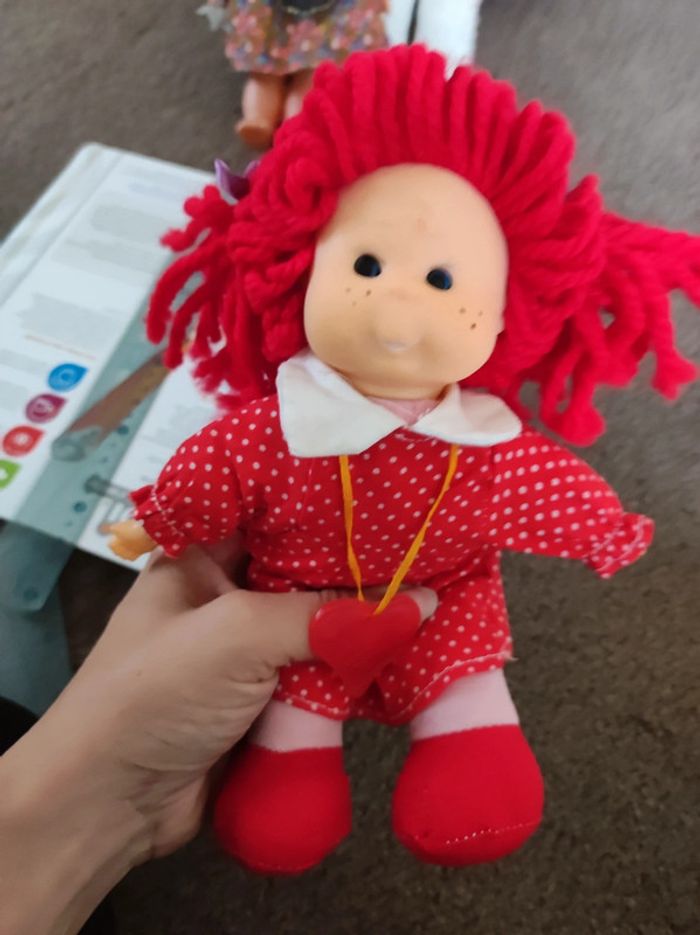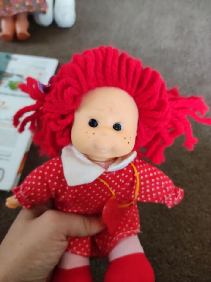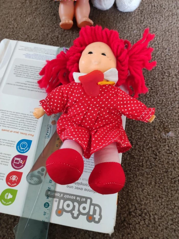 poupée corps chiffon rouge cheveux laine yeux bleus collection collector rare ancienne maison non fumeur et sans animaux n'hésitez pas à faire des lots