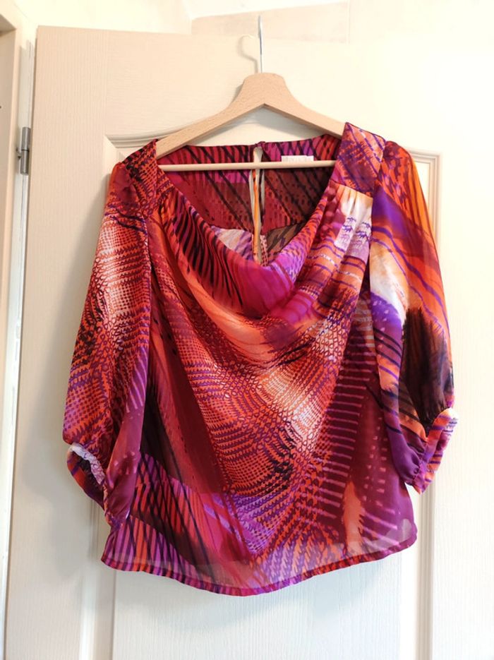 haut tunique manches longues graphique violet orange jacqueline riu taille 36 femme maison non fumeur et sans animaux n'hesitez pas à faire des lots