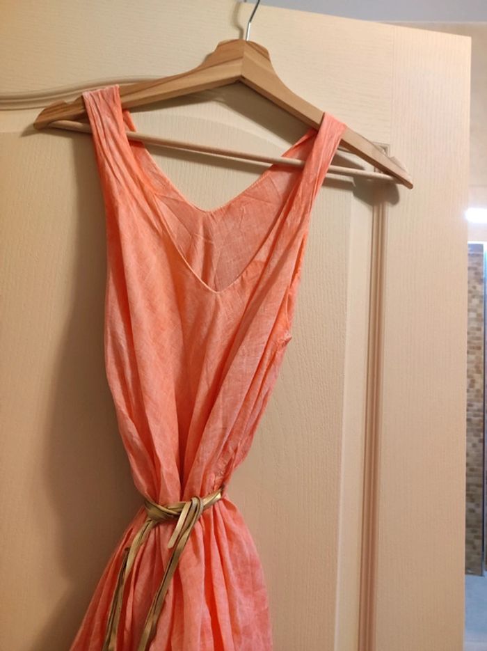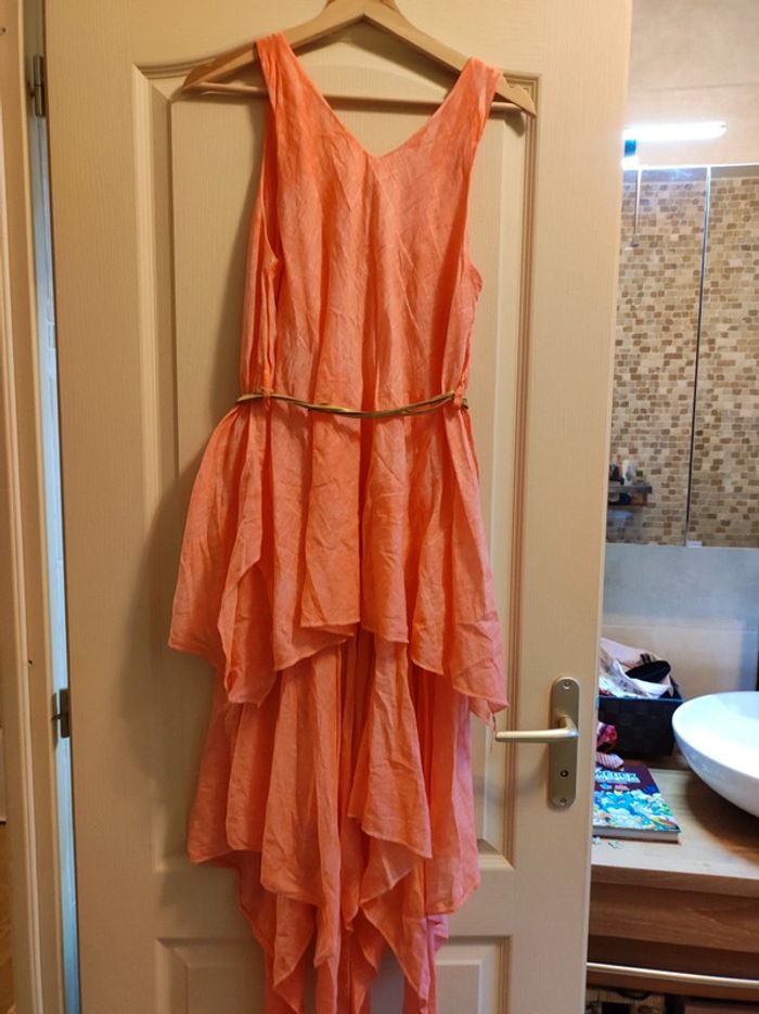 robe longue corail rose ceinture dorée manches courtes volants taille s femme jeune fille maison non fumeur et sans animaux n'hésitez pas à faire des lots