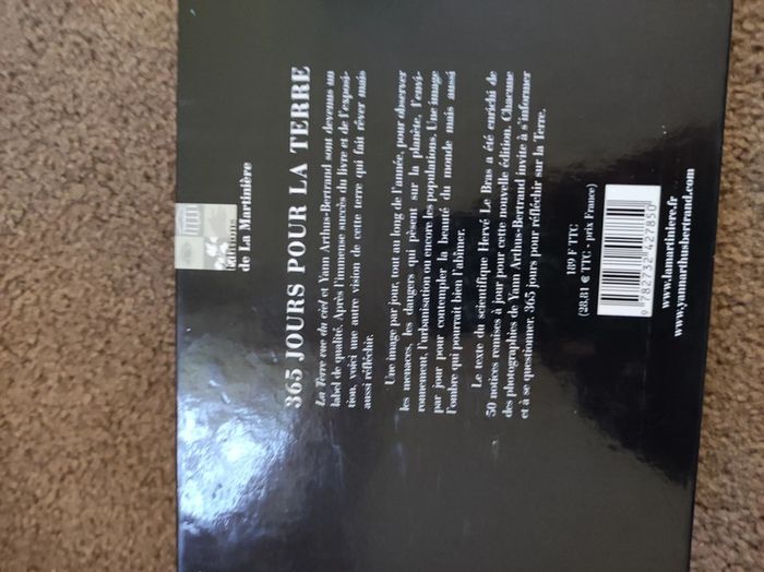 livre Redécouvrir la Terre, jour après jour. Après le succès phénoménal de La Terre vue du Ciel, 365 jours pour la Terre – 2002 se présente comme un journal qui propose de (re)découvrir une vue aérienne de la Terre. Ce sont ainsi 365 photographies en couleur de Yann Arthus-Bertrand qui sont exposées au fil des mois et des jours, et qui sont complétées par des textes du scientifique Hervé Le Bras qui donnent des informations sur le site, mais aussi sur les risques et les dangers qui pèsent sur la planète Terre. maison non fumeur sans animaux n'hésitez pas a faire des lots